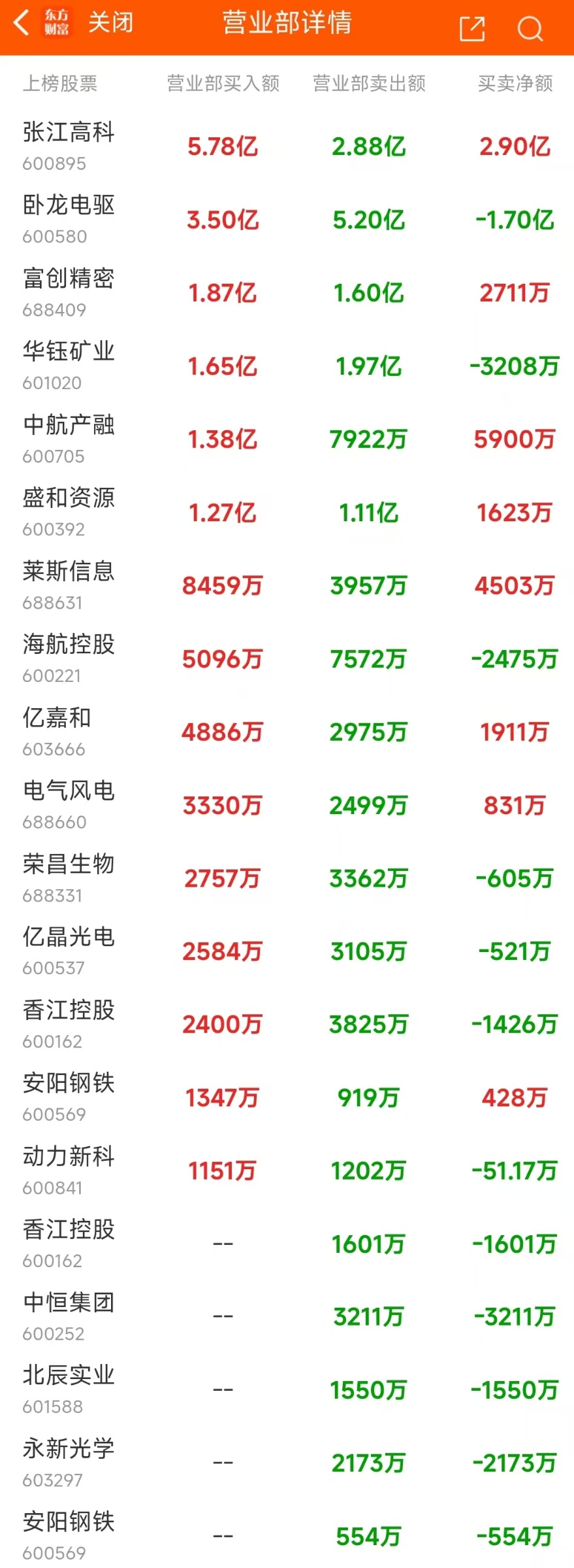 从沪/深股通席位来看,陆股通净买入张江高科2.9亿元。相反,陆股通净卖出卧龙电驱1.7亿元。