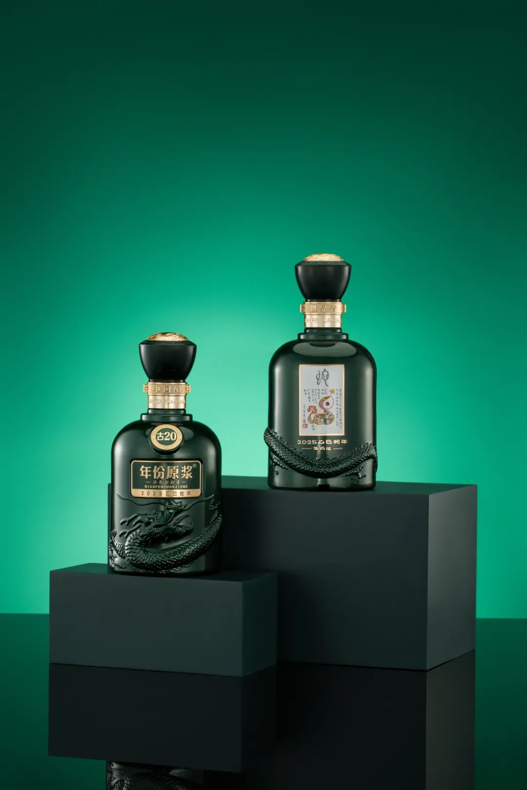 外观设计上,作为古20生肖酒系列的第五款产品,古井贡酒年份原浆古20·蛇年生肖纪念酒沿用了经典的盘龙玉玺器型,龙腾丰稔岁,蛇舞吉庆年,寓意着新的一年里,国家繁荣,人民安康。云杉绿的配色,不仅契合了木蛇年的主题,更蕴含了浓郁的自然气息,展现了云杉森林所独有的沉稳与高贵。云杉作为一种寿命极长的树木,象征着长寿与坚韧,为这款酒增添了更多的文化价值与收藏意义。