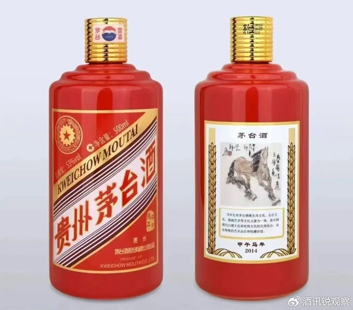 真正让生肖酒进入“轮回”的,是2014年之后的茅台。这一年,贵州茅台推出首款甲午马年生肖酒,500ml定价849元,正式开启“一岁一生肖”的发售模式。然而当时市场尚未形成对生肖酒叙事的大众认知,马茅更多被视作普通纪念酒,未引发广泛关注。