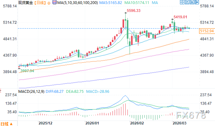 现货黄金日线图 来源:易汇通北京时间3月12日12:13 现货黄金 报 5151.94 美元/盎司