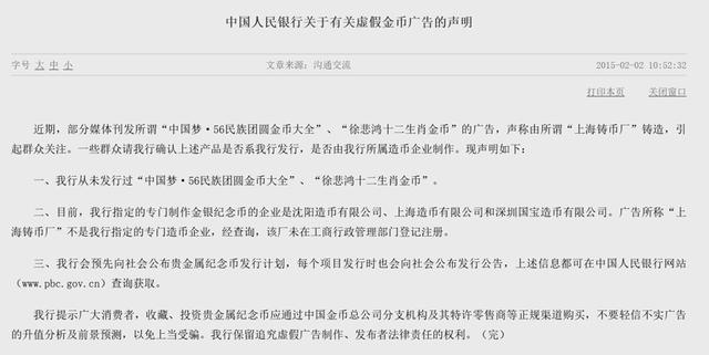 多年前,央行就对“金币大全”“十二生肖金币”等打假